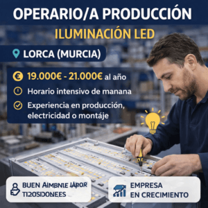Oferta de empleo en Lorca: buscan operario/a de producción en empresa de iluminación LED con sueldo de hasta 21.000€