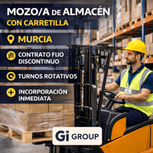 La empresa Gi Group ha publicado una oferta de empleo para incorporar mozos/as de almacén con carretilla en diferentes zonas de Murcia, como Las Torres de Cotillas, Sangonera la Verde y Alhama de Murcia. Se trata de una gran oportunidad, ya que hay 30 vacantes disponibles y no se requiere experiencia previa obligatoria. ¿En qué