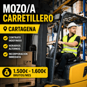 Se buscan mozos/as carretilleros en Cartagena con contrato estable (1.500€ – 1.600€)