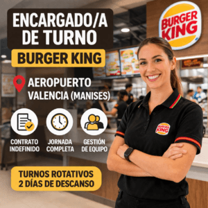 Burger King busca encargado/a de turno en el Aeropuerto de Valencia con contrato indefinido