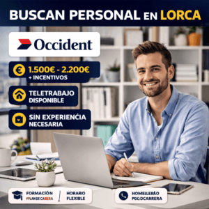 La compañía aseguradora Occident ha publicado una oferta de empleo en Lorca (Murcia) para incorporar nuevos perfiles con o sin experiencia en el sector de los seguros. Se trata de una oportunidad ideal para personas que quieran iniciar o desarrollar su carrera profesional en un entorno flexible, con formación incluida y posibilidad de crecimiento. El