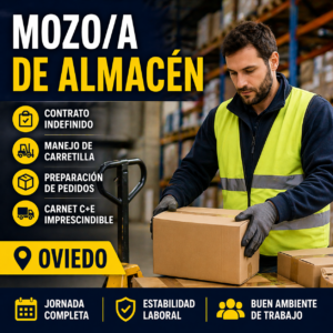 Buscan mozo/a de almacén en Oviedo con contrato indefinido